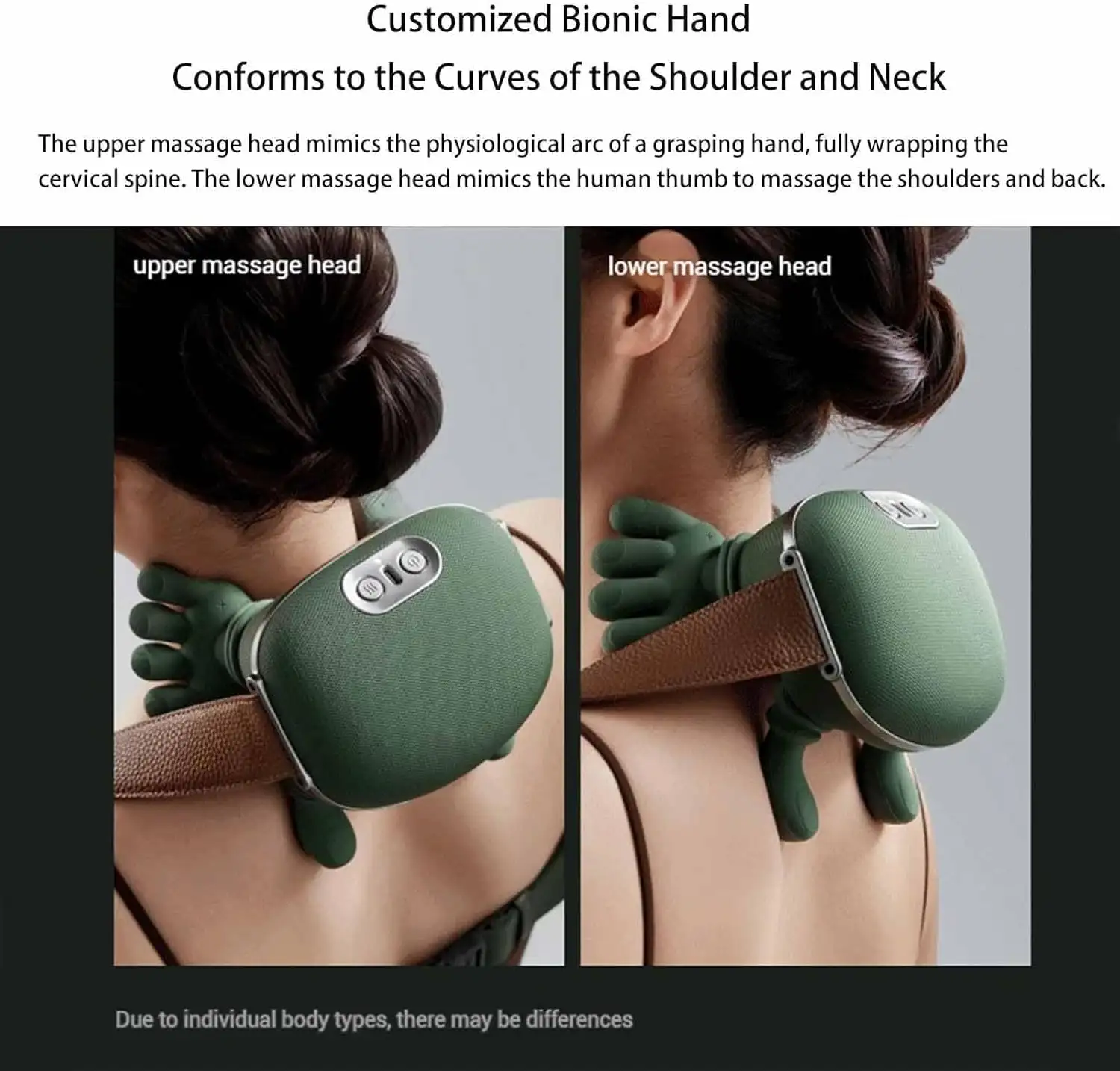 The upper massage heads provide a grasping, palm-like motion, while the lower nodes apply thumb-style pressure, melting away muscle knots and stress effectively. Whether you're dealing with office fatigue, long study hours, or daily tension, this massager brings instant relaxation.